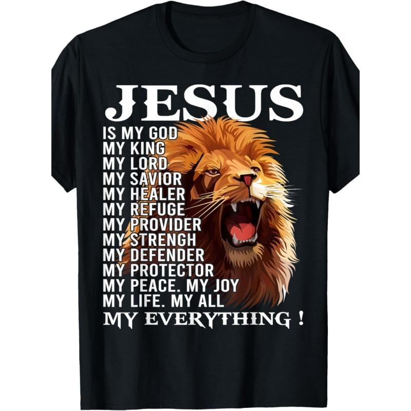 European Sizes Men's T-Shirt with Lion of Judah & Bible Verse Design - Is My Everything Religious Graphic Tee, Breathable Medium Stretch Fabric