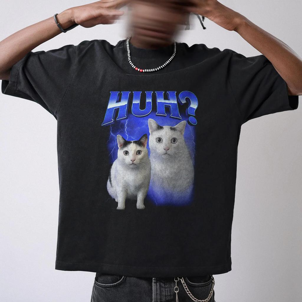 HUH Funny Cat Meme TShirt Dank Humor Tee Summer Mens and Womens Loose and Breathable Tshirt Top