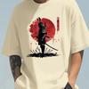 Summer Fashion Casual and Loose Japanese Samurai Pattern Printed Roundneck Shortsleeved Tshirt Top for Men