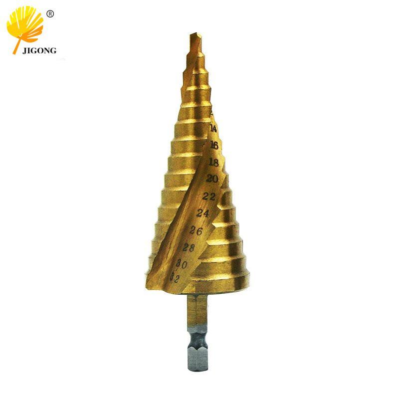 4-32mm Titanium Plated Spiral Step Drill Bit with Hex Shank for Hole Enlargement