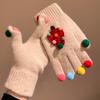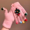 Cute Creative Red Christmas Tree Knitted Gloves for Women Winter Five Finger Warm Plush Windproof and Cold Proof Cycling Christmas