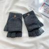 Solid Color Flip Gloves New Warm Solid Color Plus Velvet Writing Fingerless Simple Gloves
