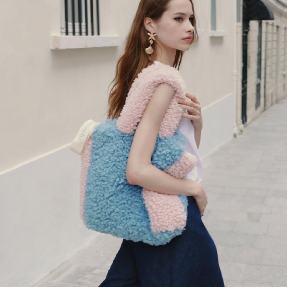 FAUX FUR PHRYNE ECO BAG (LAC007KRACC) is a signature line product by Lemonplet, featuring a cozy and lightweight eco-bag made of mixed colored fake fur. Designed with a spacious size suitable for holding magazines, it also features two pockets inside for practicality. The lightweight fake fur material allows it to coordinate well with a range of styles, from basic to statement colors.