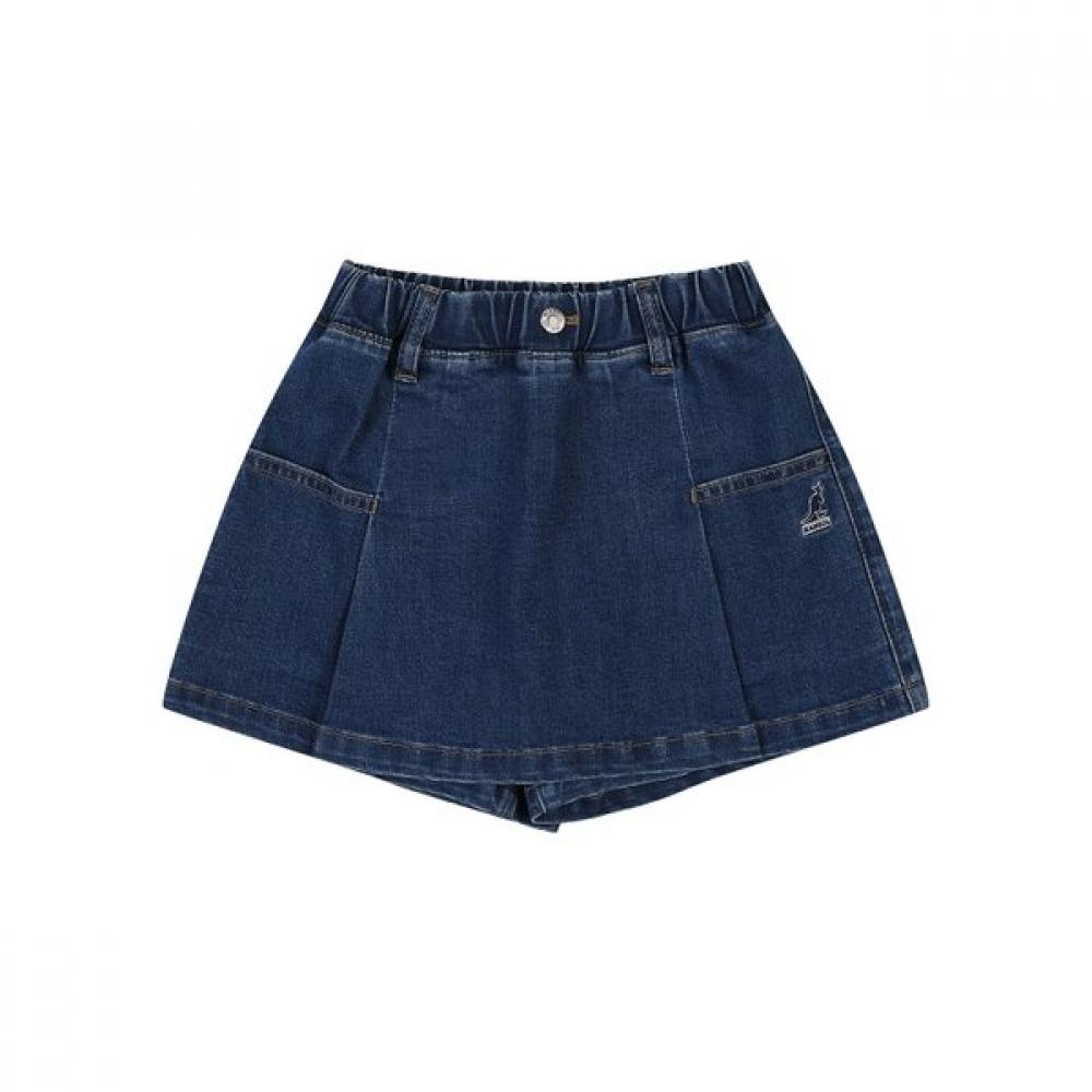 Kangol Kids Denim Skirt Pants SA 2101 features a sophisticated navy color and combines a skirt and pants design. This product is designed with the mobility of infants in mind and is suitable for completing a casual look.