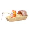 Soothing Chinese Riverside Design: This charming cat fishing sculpture, paired with a traditional awning boat, instantly infuses your aquarium, terrarium, or desktop with a lazy and relaxing ambiance, evoking the serene pleasure of a riverside retreat in a Jiangnan watertown.