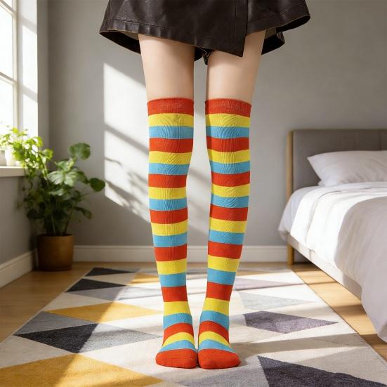 Striped Thigh High Socks Women Colorful Over-the-Knee Socks Retro Stretchy Thigh Highs for Girls Cosplay Lolita Costume