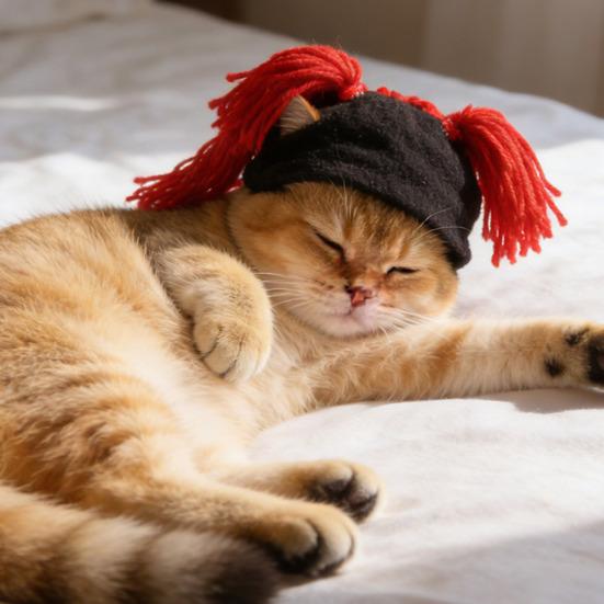 The hat's fun, bright colors and exaggerated yarn ponytail add a trendy and adorable touch, instantly transforming your pet into a cute rock star. Made from soft, skin-friendly fabric, it provides gentle comfort without causing irritation. Lightweight and breathable, this hat won't burden your pet's head, allowing free movement during play and rest.