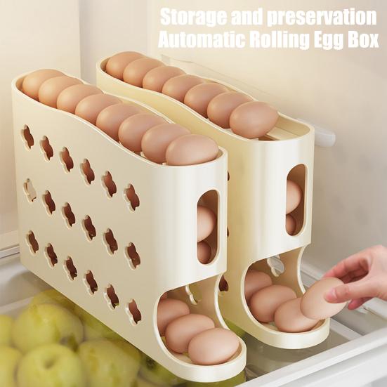 Organize and protect your eggs effortlessly with the auto-rolling egg dispenser, the smart solution for fridge storage. Designed with a gravity-fed rolling system, it automatically brings the oldest egg forward, ensuring you always use the freshest first while keeping your refrigerator tidy and efficient. This 4-tier vertical holder fits neatly on a shelf or countertop, storing up to 30 eggs in minimal spaceperfect for busy households or anyone looking to maximize kitchen storage. Simply place it in your fridge and load your eggs; no assembly or tools are required for instant use.