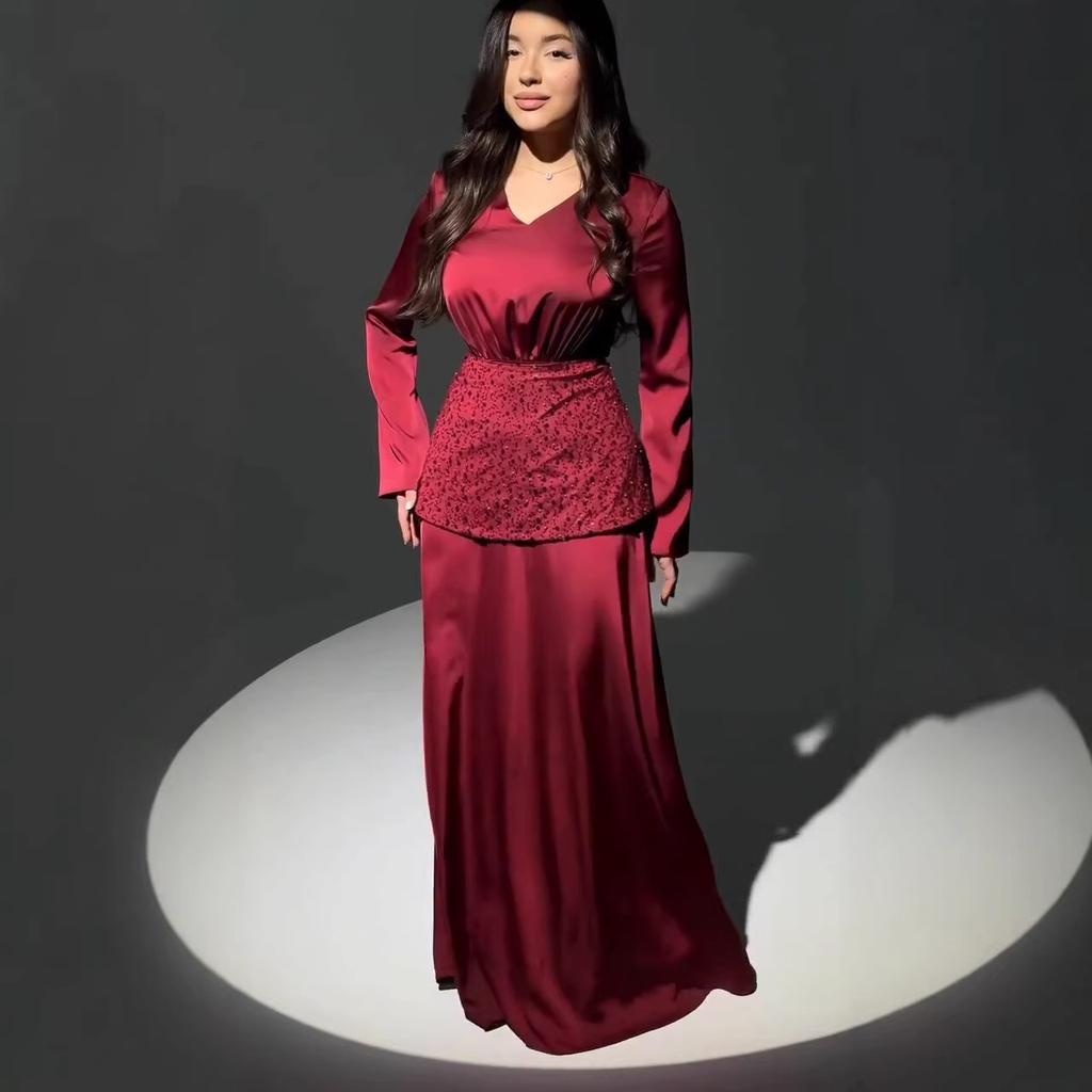 European and American Women's Clothing Spring New Temperament Elegant V-neck Sequined Apron Satin Dress Dress