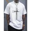 European Sizes Men's Casual Short Sleeve T-Shirt | Breathable Round Neck White Cross Print Black Religious Pattern Top, Spring Summer Autumn Outdoor