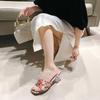 Thick Heel Cool Slippers Summer Out One-word New Chinese Style with Skirt Crystal High Heels