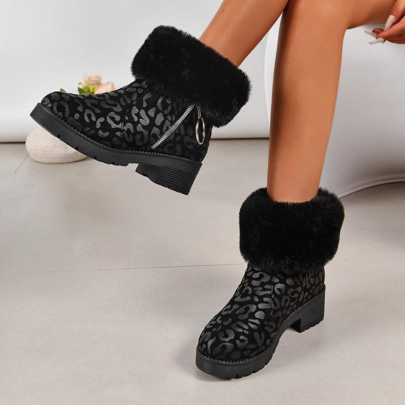 Winter New Large Size Leopard Print Short Boots European and American Round Head Lint Cotton Comfortable Flat Bottom Martin Boots