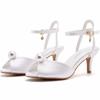 Summer Shoes For Women Sandals Silk 6.5CM Low Thin Heels Pearl Buckle Strap Hollow Peep Toe Women's Shoes White Dress Sandals
