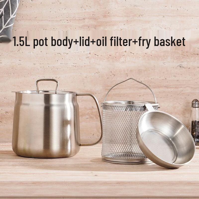 304 Stainless Steel Oil Strainer Pot with Frying Basket