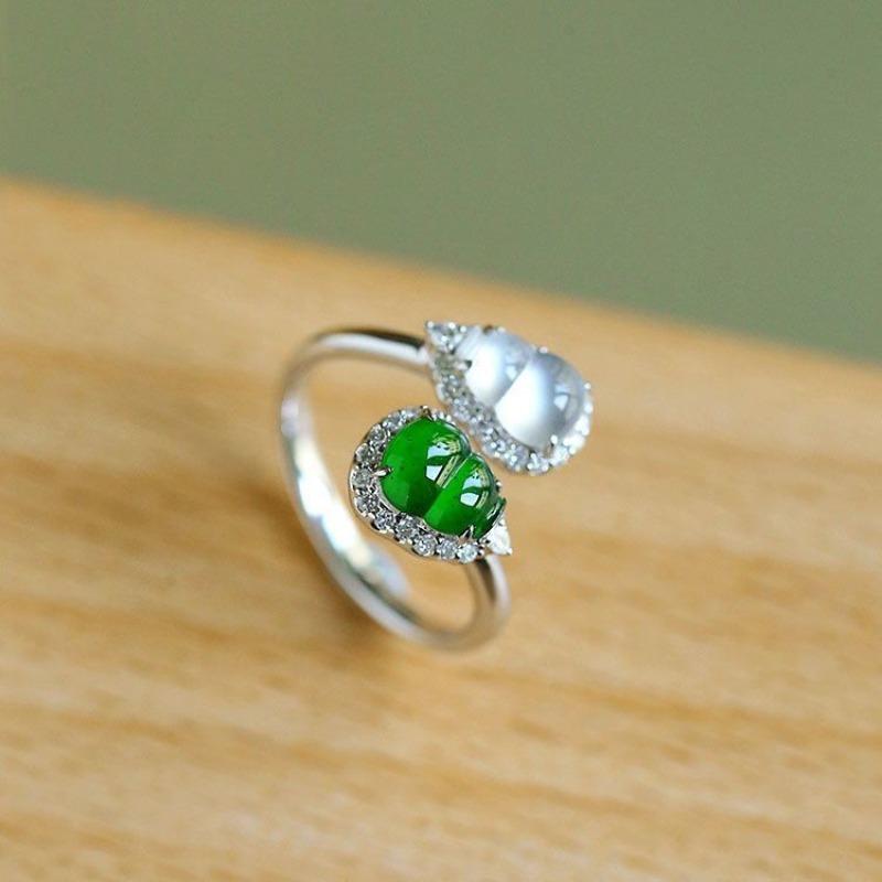 Silver 925 Inlaid Green and White Dual Tone Natural Chalcedony Gourd Rings for Women Exquisite and Fashion Ring Jewelry Gifts