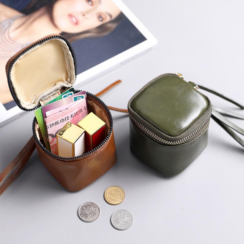 Wax Genuine Skin Coin Purse Square Lipstick Headphone Small Bags Storage Bags Mini Bag Travel Purses Cute Keychain Bag for Women