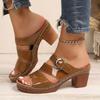Large Size Women Sandals Summer New Style Thick High Heel Sandals Fish Mouth Roman Slippers Rubber Bottom Lightweight Shoes