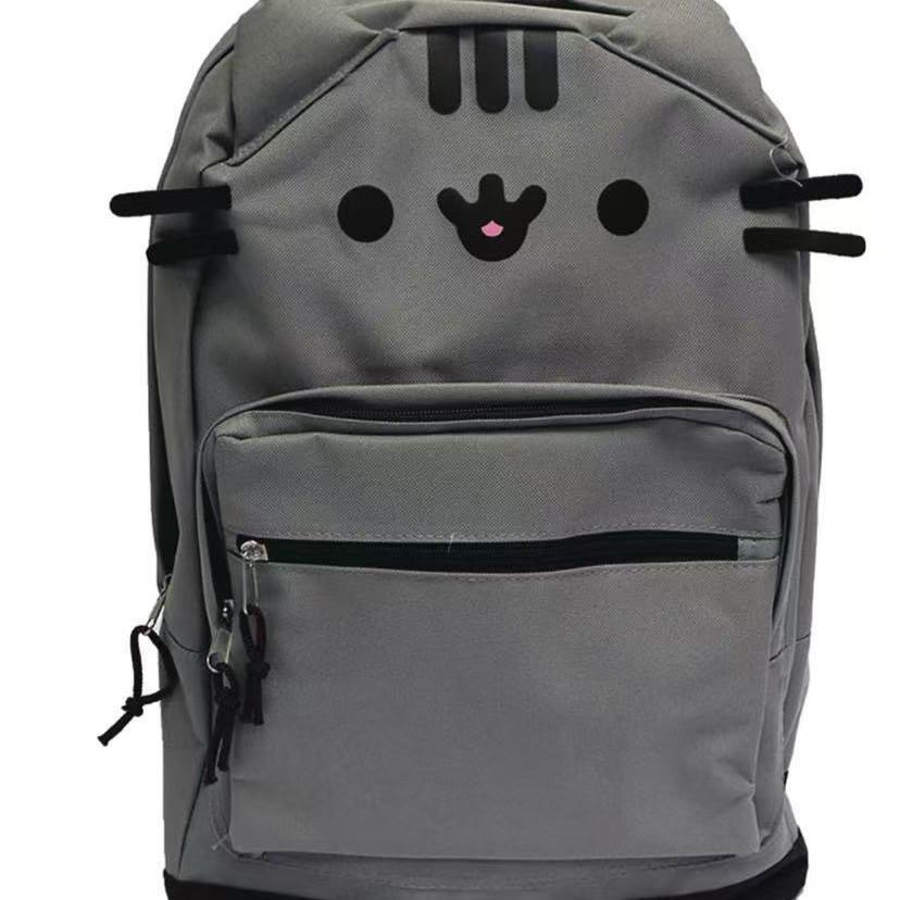 Double Shoulder Cartoon Cat & Bear Canvas Backpack - Cute, Large Capacity, Soft Brown & Milk White for Students
