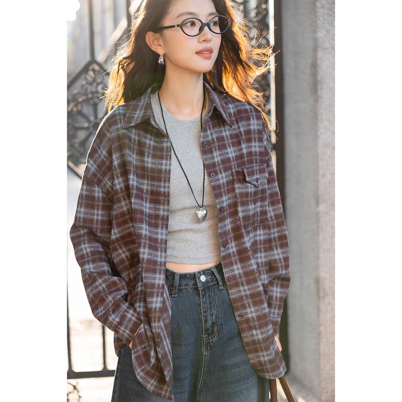 Mocana Women's Vintage Plaid Long Sleeve Shirt