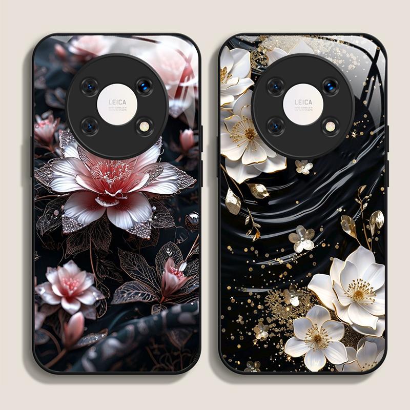Vintage Floral Stylish Lotus Flower Tempered Glass Phone Case for Huawei Nova 13 12 SE 11 10 Pro Mate 40 30 P60 P50 P40 5G Cover
