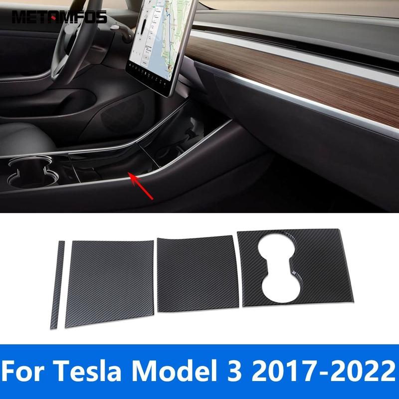 For Tesla Model 3 2017- Carbon Fiber Center Console Water Cup Panel Cover Trim Sticker Interior Accessories