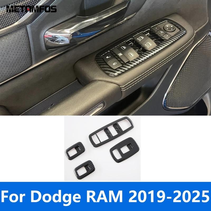 Window Lift Switch Cover Trim For Dodge RAM -2024 2025 Carbon Fiber Ide Armrest Decoration Frame Interior Accessories