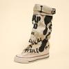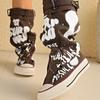 Graffiti 2026 New High Top Canvas Shoes Women's Spring Boots Wide Barrel Mid Barrel Boots 2026 New Trouser Barrel Stacking Boots