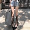 2026 New Fashion Female Breathable Hollowed Out Mesh Boots Leather High Knight Boots Knee High Heels Show Thin Long Boots
