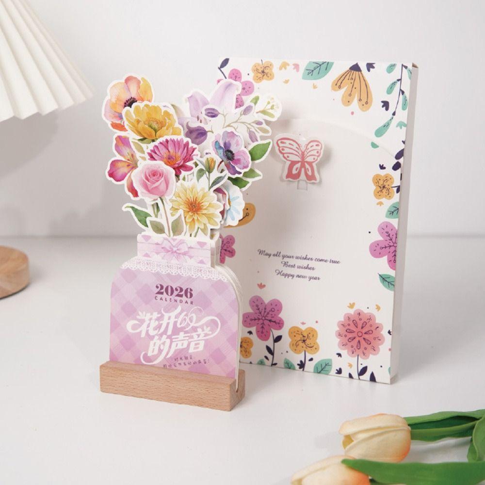 Detachable Base Bloomy Flowers Desk Calendar Vase Shaped Monthly Planner for Table Desk Decor