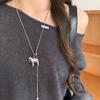 Funny Smooth Surface Metallic Cartoon Horse Flower Pendant Necklaces for Women Long Adjustable Wax Rope Chain Chokers