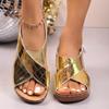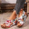 Large Size Wedge Sandals Summer 22 New Printed Cross with Velcro Sandals
