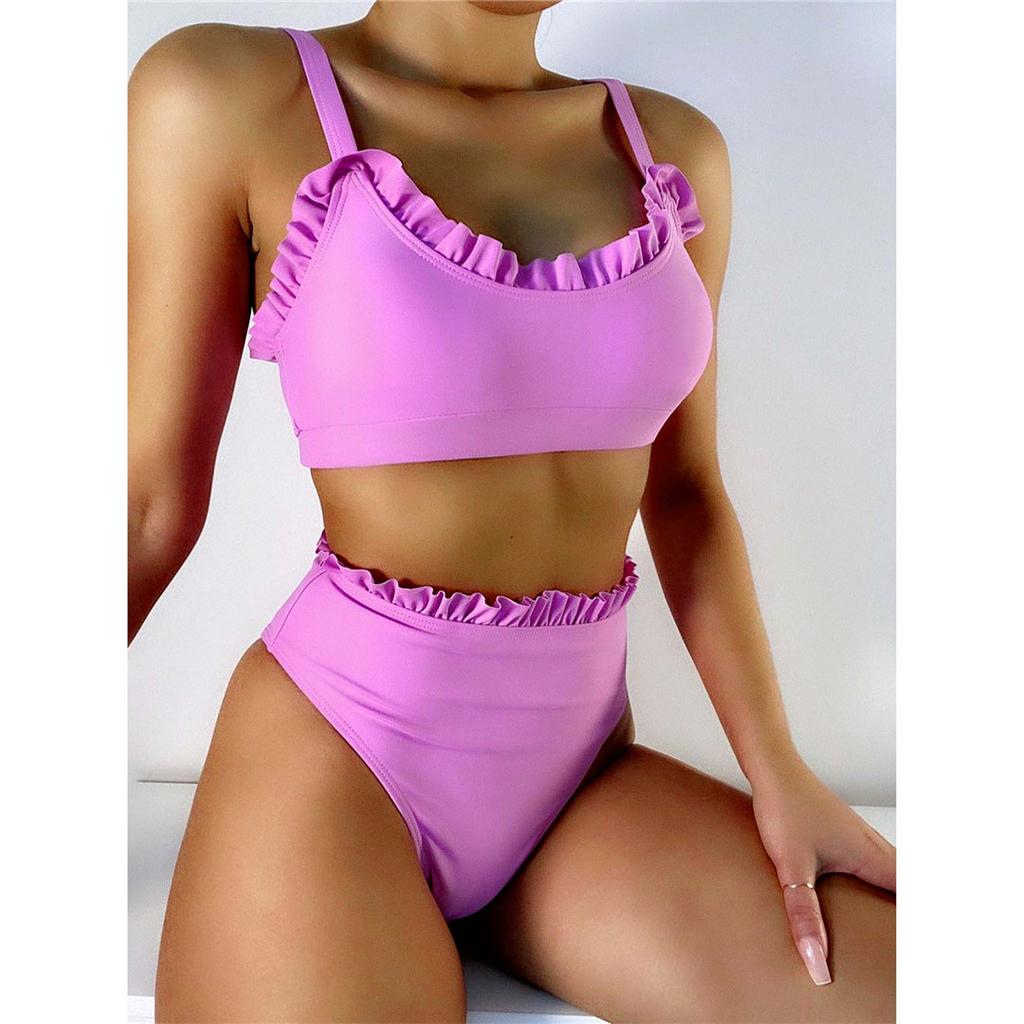 Ruffled Frilled High Waist Bikini Female Swimsuit Women Swimwear Two-pieces Bikini Set Padded Bather Bathing Suit Swim K2768C