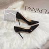 Black High-heeled Shoes Women's Fine-tipped 2026 Spring-autumn New-style Sequins Crystal Wedding Shoes Pointed-toe Sexy Shoe