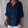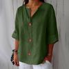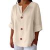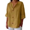 QICED Women's Fashion Casual Solid Color Print 3/4 Sleeve V Neck Blouses & Shirts