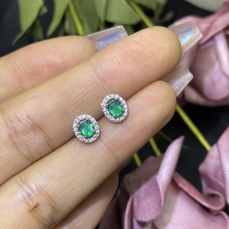 100% Natural Emerald Stud Earrings Luxury Style 3*4 Mm 925 Silver Colombian 0.5ct