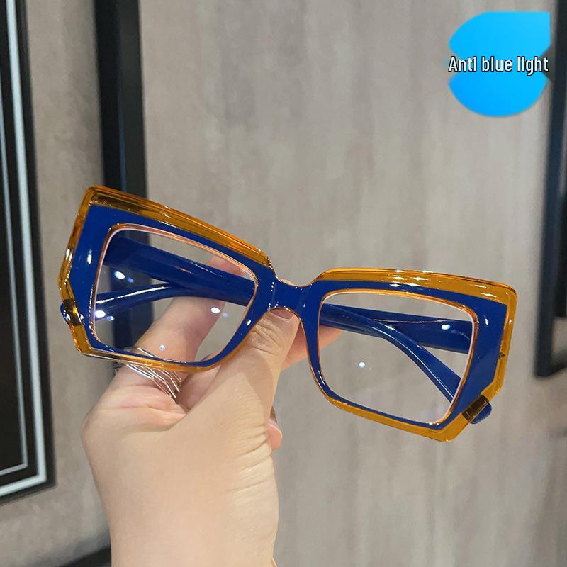 Retro Color Block Cat Eye Flat Top Blue Light Glasses for Women - Fashionable Polygonal Frames