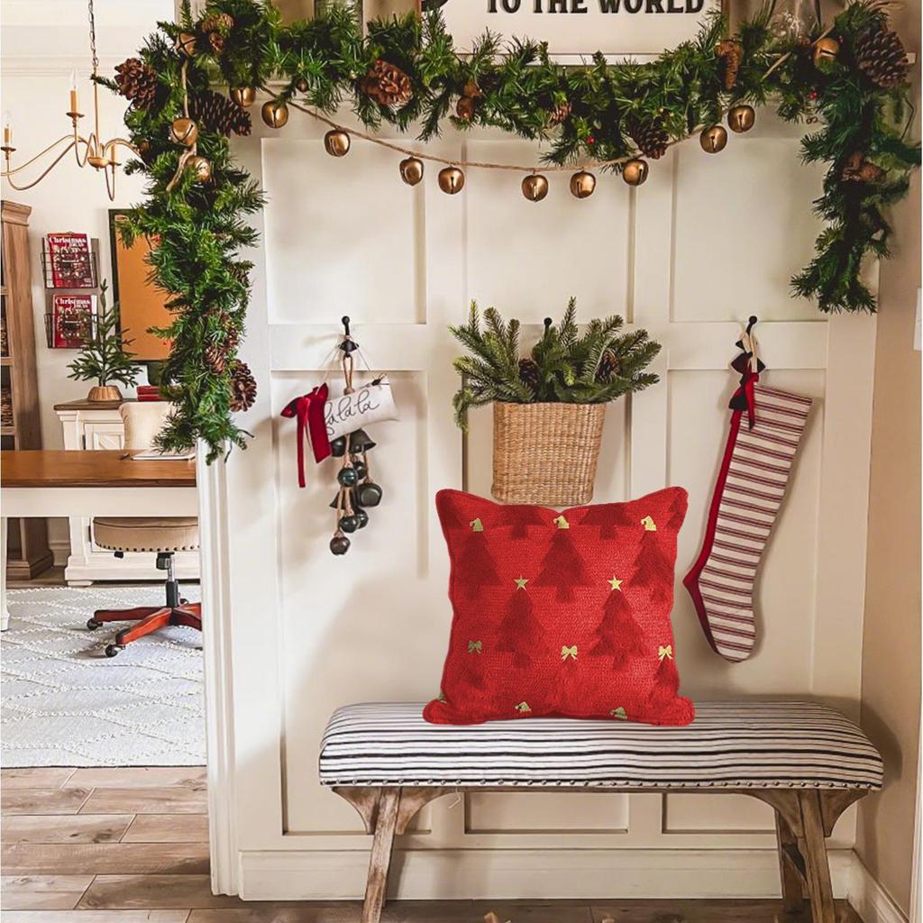 Christmas Cushion Pillow Cover 18x18 Inch Machine Washable Christmas Festive Plush Pillow Cover For Living Room Bed Sofa Bedroom