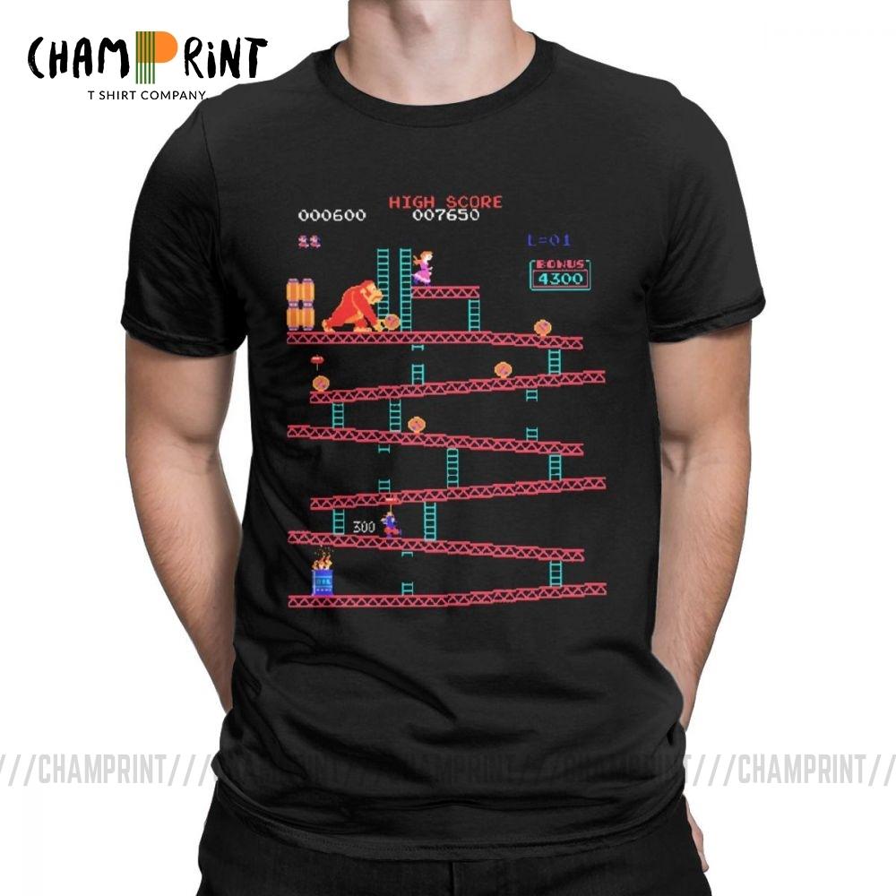 Donkey Kong TShirts Men Arcade Game Collage Vintage Pure Cotton Tees Crew Neck Short Sleeve Retro T Shirt Plus Size Funny Tops