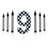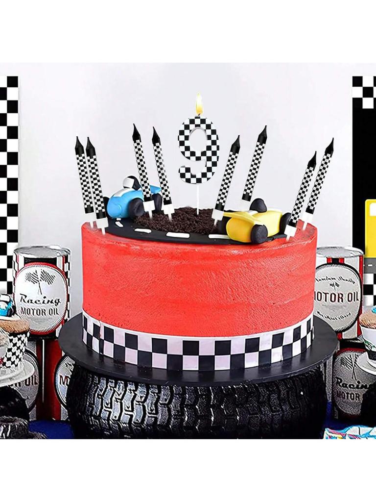 7Pcs Birthday Candles Set,Cake Numeral Candles,Racing Cars Themed Birthday Candles for Cake Candle Checkered Decoration