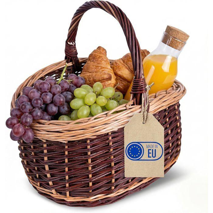 Panier - CREATIVE HOME - Bicolore Champignons - Osier naturel tressé main - Ficelles amovibles lavables - 43x33x40 cm