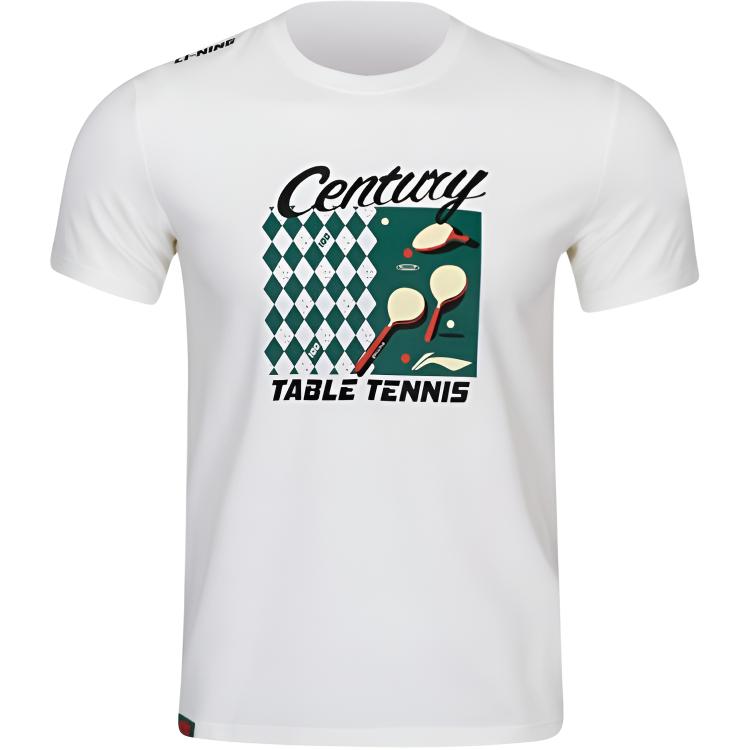 Li Ning Table Tennis Series Round Neck Logo Letter Couple T-Shirt Unisex Tops Off-White AHSW061-3