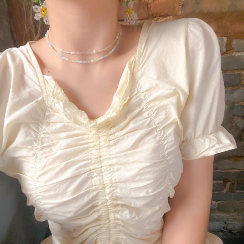 Clear Pastel Bead Pearl Necklace Choker