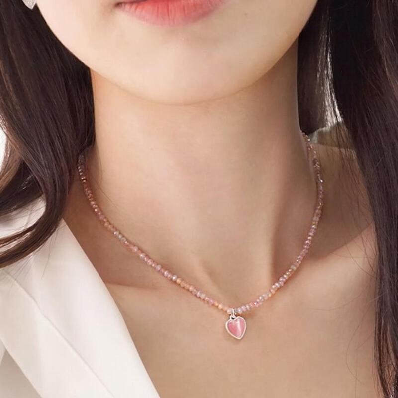 Pleated Rose Bead Necklace Heart-Shaped Cat's Eye