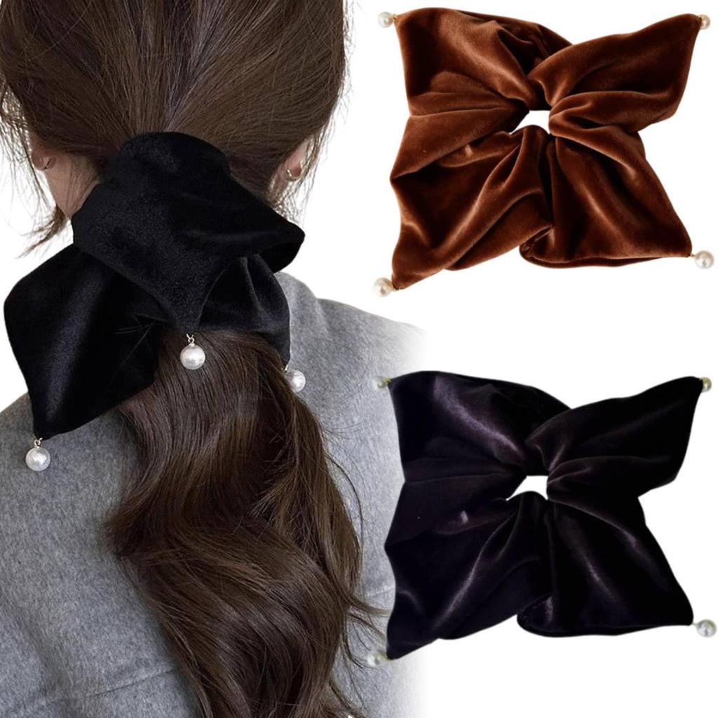Set of 2 Velvet Ribbon BetterJonny Hair Large Hair Velvet Hair Pearl Hair Hair Gentle On Black Square Scrunchies, Accessories, Ties, Accessories,