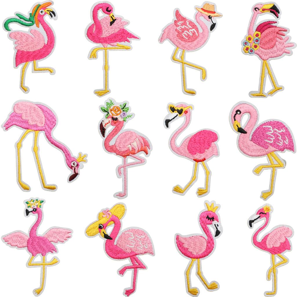 Flamingo Big Bird Embroidery Cloth Sticker Bag Decoration Cartoon Flamingo Patch Sticker Computer Embroidery Label Pink Love Bird