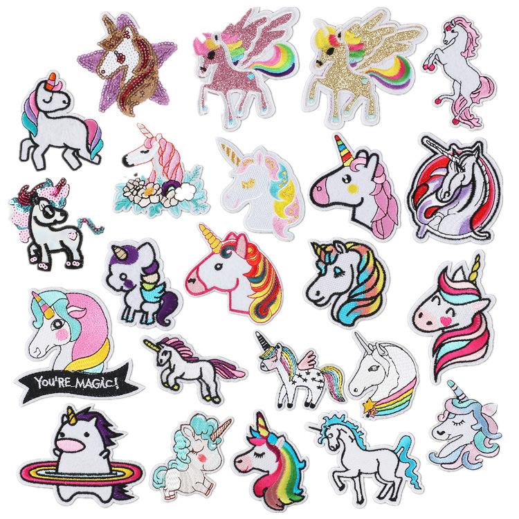 Hot-Selling Unicorn Embroidery Cloth Sticker Cartoon Sequined Pony Patch Sticker Computer Embroidery Label Ironing Stamp
