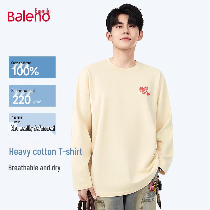 Baleno Men's 220g Heavyweight Long Sleeve T-Shirt with JPB Red Heart Print