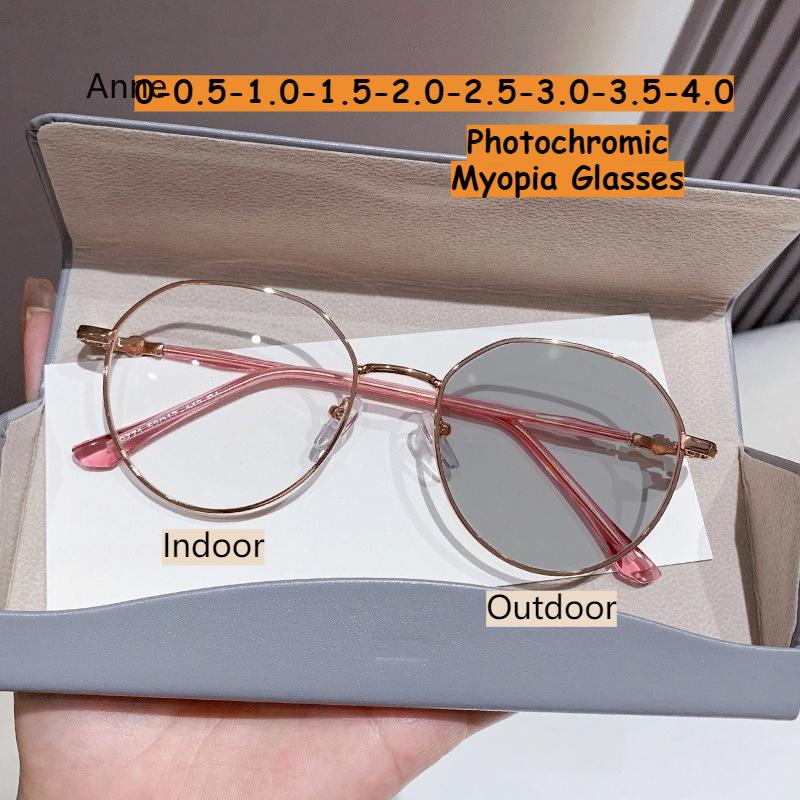 Fashion Photochromic Myopia Glasses Men Women Vintage Retro Round Frame Intelligent Sunglasses Near Sight Eyewear
