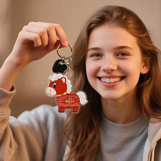 This exquisite acrylic keychain pendant features a transparent frame with a smooth, glossy surface that enhances durability and clarity, making the vibrant red horse design stand out with three-dimensional visual effects.
