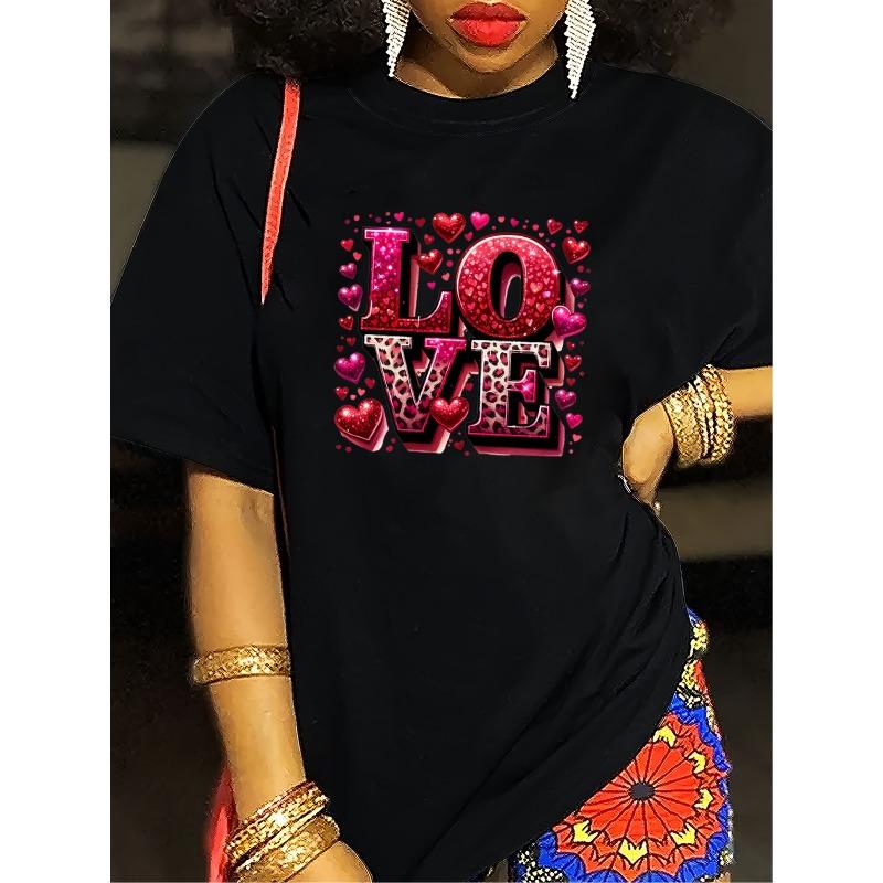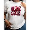 European Size Women's Casual Short Sleeve T-Shirt with LOVE Print&Pink Heart -Crew Neck Blouse,All-Season Comfortable Everyday Top,for Valentine's Day